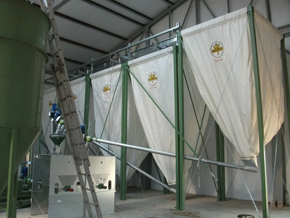 Міні комбікормові установки Neuero складаються з пневматичної зернодробилки, змішувача, шнеків для подачі зерна, ємностей для подрібнення компонентів, накопичувальних бункерів, системи керування та інших складових. Комплектація лінії підбирається індивідуально залежно від потреби у комбікормі, кількості вихідних компонентів комбікорму та ін. параметрів.
