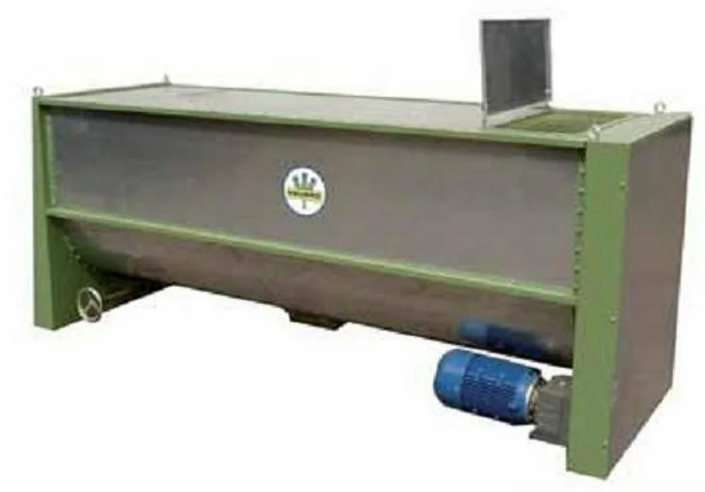 Горизонтальный смеситель комбикормов с высокой точностью смешивает компоненты комбикорма, имеет большое загрузочное отверстие. Смеситель комбикормов NHM 2500 выделяется тем, что имеет достаточно компактную конструкцию. Два смешивающих шнека, которые вращаются друг напротив друга, размещены на одном валу и обеспечивают очень точное смешивание за короткий промежуток времени. Конструкция смесителя позволяет сохранить структуру корма, благодаря медленному вращению.
