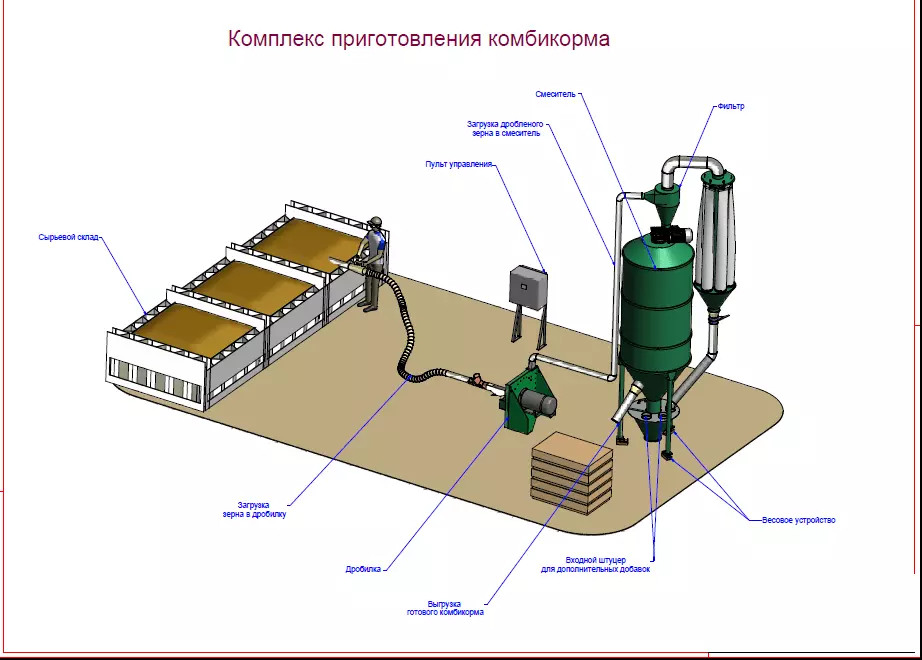 измельчения компонентов, накопительных бункеров, системы управления