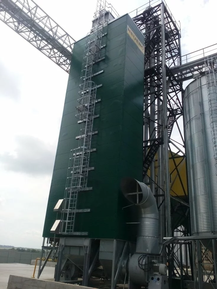 - Простота и удобство: для удобного обслуживания зерносушилки мы сделали достаточное количество лестниц и платформ по всей сушилке.