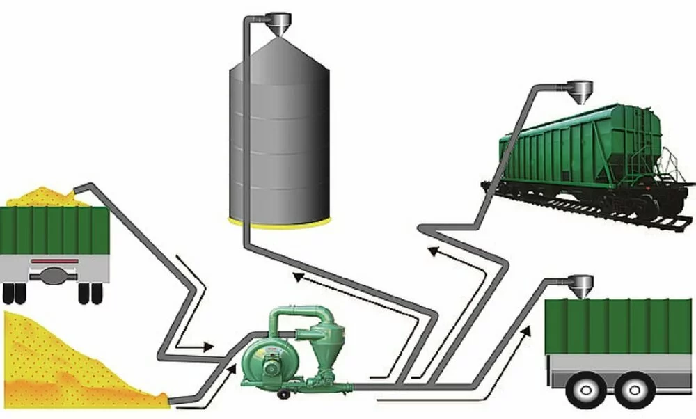 Пневмопогрузчики зерна можно успешно использовать для загрузки грузовиков и вагонов.