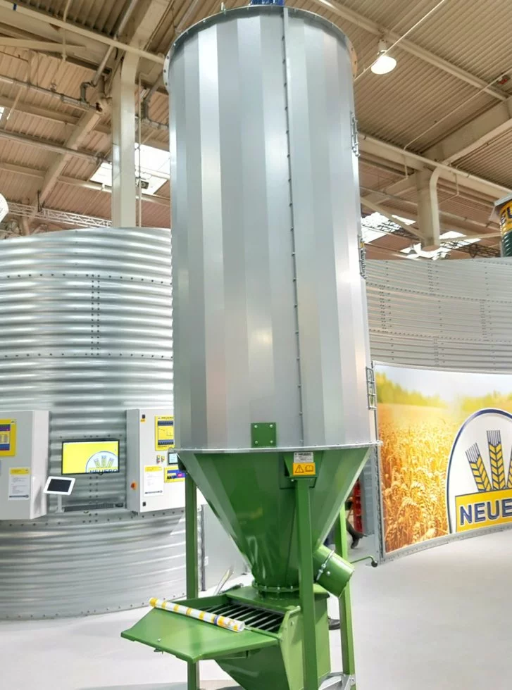 Вертикальный смеситель комбикорма FAM используется для приготовления комбикорма из дробленого зерна и других измельченных компонентов. В нижней секции смеситель имеет загрузочную воронку, через данную воронку в смеситель добавляют небольшие дозы минеральных и других компонентов. Смешивание комбикорма в смесителе производится посредством шнека. Смесительный шнек приводится в движение мотором-редуктором (от 2,2 до 5,5 кВт). Вместимость от 1200 до 5500 л.
